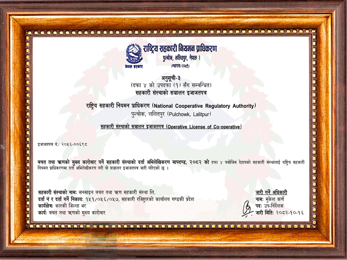 संस्थाको नाम : सनसाइन बचत तथा ऋण सहकारी संस्था लि.